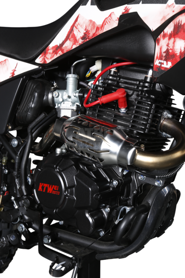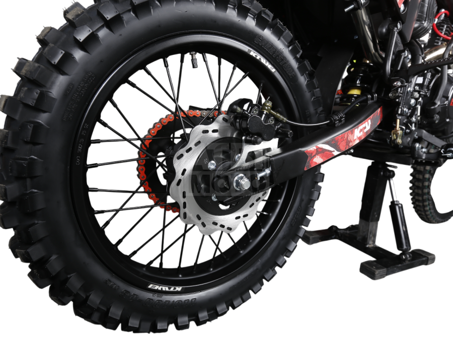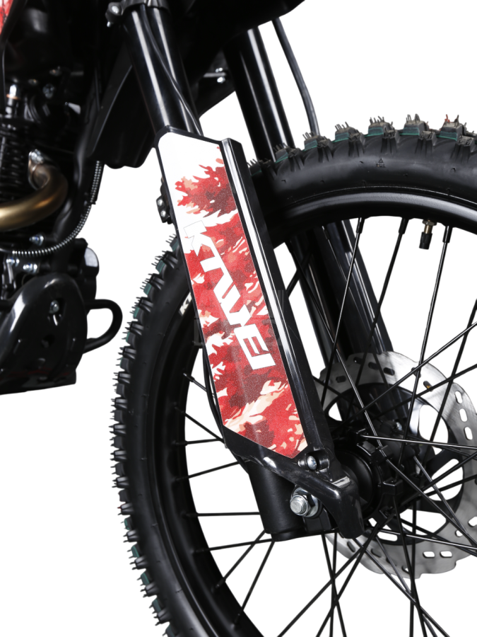 Двигатель Zongshen CB300F (271 см³) выдаёт 19,4 л.с. и работает в паре с карбюратором Nibbi PZ30, обеспечивая стабильную тягу на средних оборотах и предсказуемое поведение в любых условиях. Пятиступенчатая коробка передач даёт комфортную управляемость как в на грунтовке, так и на лайтовой пересечёнке.