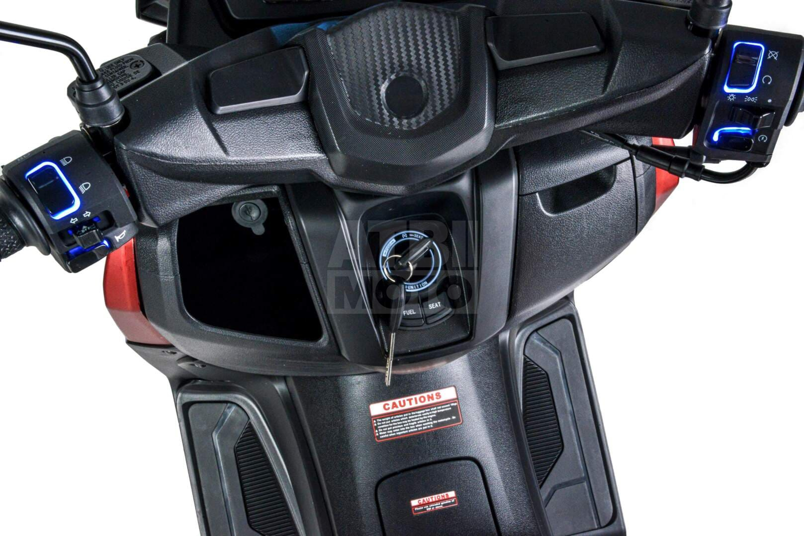 Открывающееся сиденье и багажник с кнопочным механизмом — Удобный доступ к хранению личных вещей, что делает скутер еще более практичным.