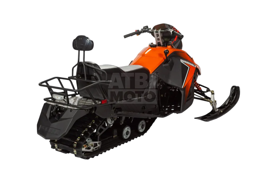 Модель оснащена одноцилиндровым карбюраторным двигателем 150 см³ мощностью 10 л.с., развивающим скорость до 40 км/ч. Этого достаточно для уверенного движения по насту и свежему снегу.